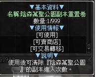 使用後可清除『陰森萬聖公園』的副本進入次數。