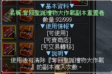 使用後可清除『奪回聖誕禮物大作戰』的副本進入次數。