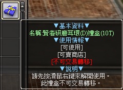 A. 將禮盒按右鍵之後便可取得耳環,裝備耳環後便可開啟此道具功能。